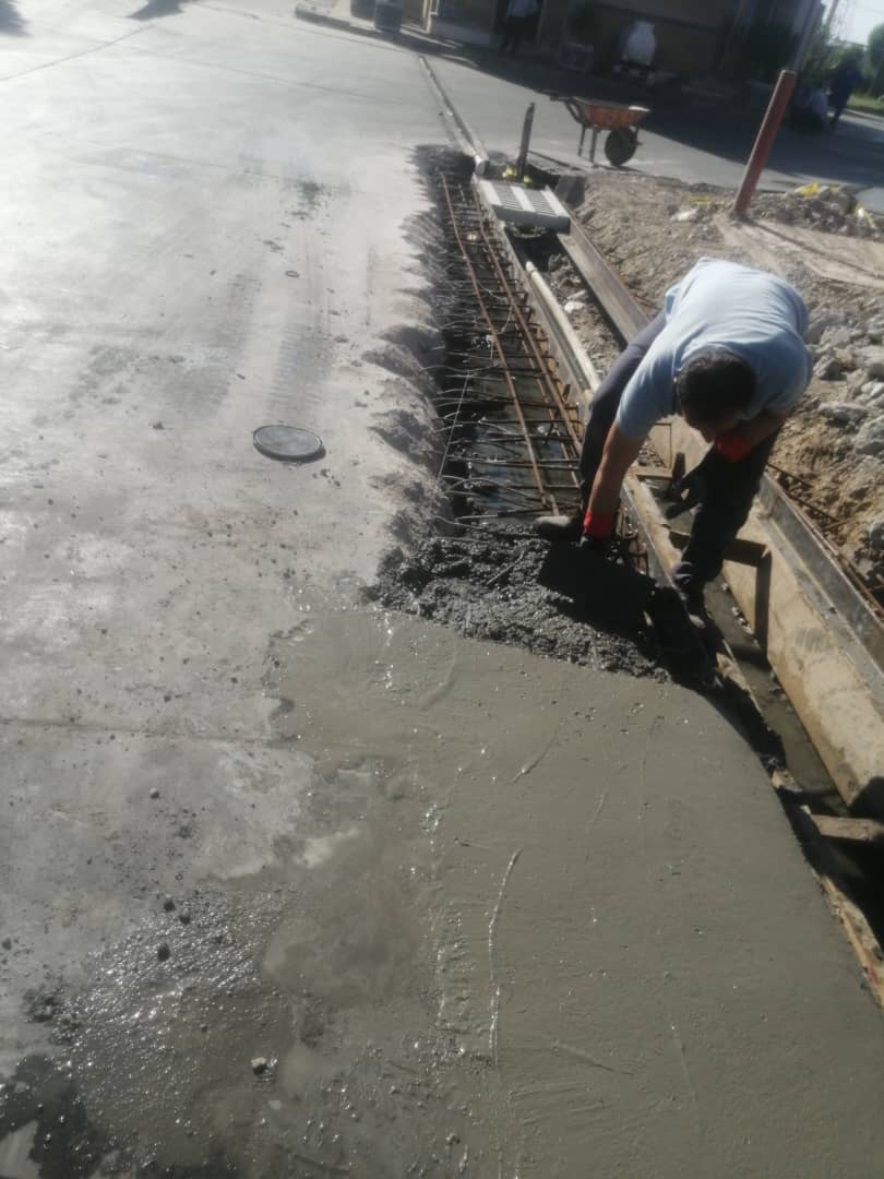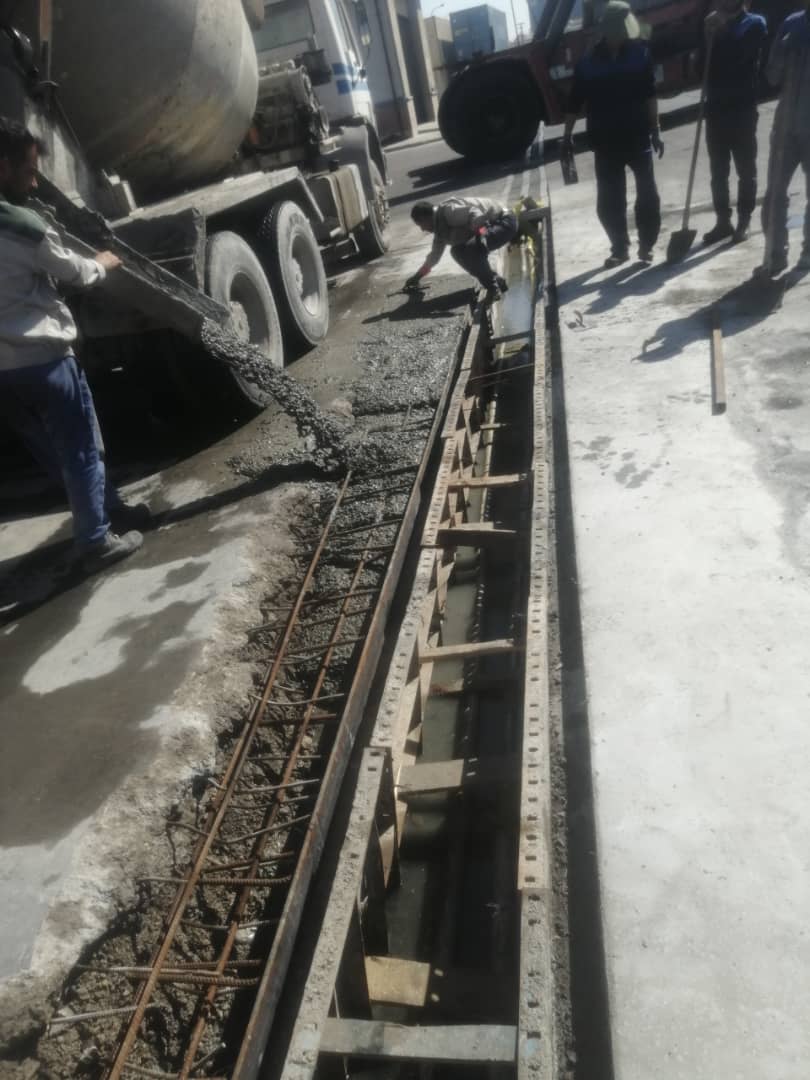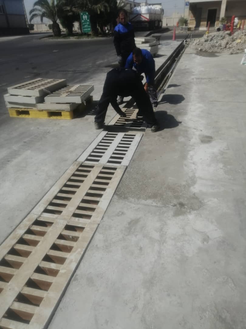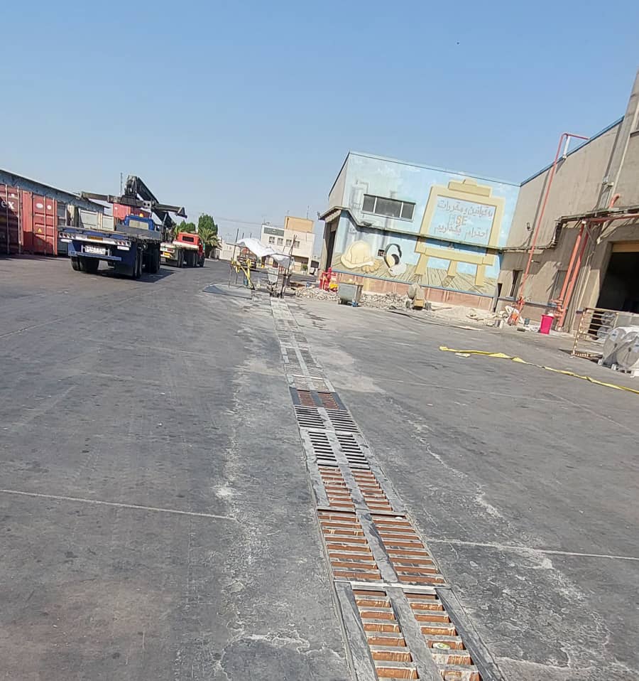Construction of paving for the roll warehouse of the LD unit at Amir Kabir Petrochemical Company, including excavation, welding, rebar installation, formwork, and installation of pre-fabricated bridges