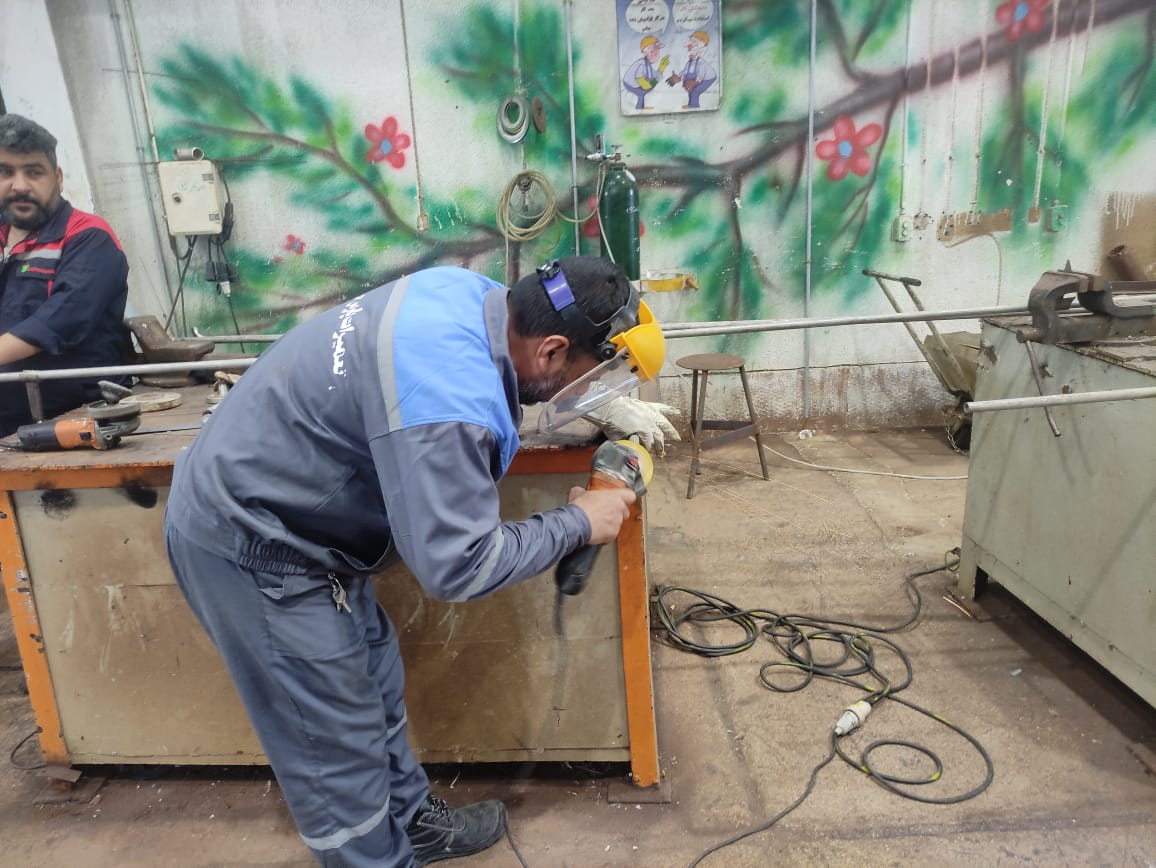 پانچ میلگرد و خم زدن آن برای آرماتور بندی جهت بتن ریزی و ساخت پیوینگ رو بروی انبار محصول واحد LD پتروشیمی امیرکبیر