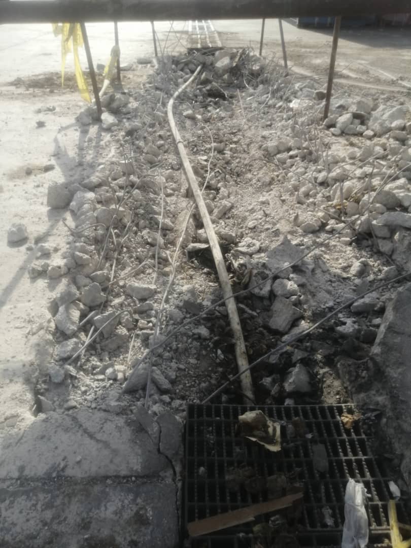Rebar punching and bending for reinforcement works for concrete pouring and paving construction in front of the product warehouse of the LD Unit at Amirkabir Petrochemical Company